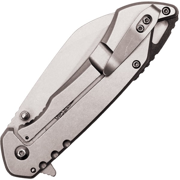 The FK-214 is an assisted open folding pocket knife with a sleek design and sharp looks. An ideal tool for everyday use, this steel blade is ready to tackle any job. This lightweight design has a silver handle with black accents that offers comfortable grip along the contoured edges. With a 7.75″ overall length, this pocket knife can easily fit in your pocket and secure into place with the included belt clip plus lanyard hole for easy carry. Experience optimal control as you use it for tough tasks like cutting rope or slicing food.