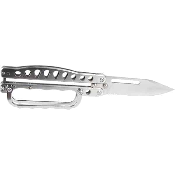 The BK-102 is a heavy duty constructed Butterfly Trench Knife perfect for protection and utility. Measuring 11″ overall length it features a 5″ half serrated blade made from durable stainless steel. The 6″ handle also has a metal knuckle guard specially designed for this knife making it both comfortable to hold and use, as well as being easily removed when desired. A superior design combining elegance and efficiency makes this the ideal tool for everyday use or outdoor activities.