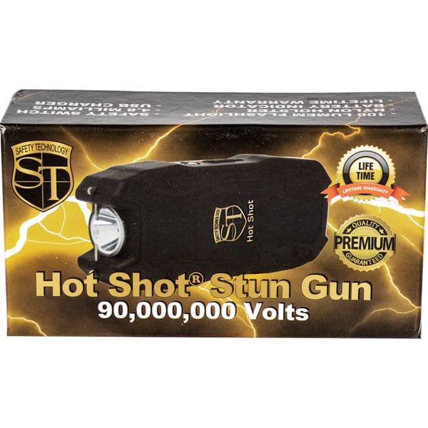 The Hot Shot Stun Gun is the perfect self defense tool to keep you and your loved ones safe. With 4.8 milliamps of power depending on battery freshness, and up to 90,000,000 volts of muscle-constricting electricity delivered through two strong probes, you can take out any attacker with little effort. This compact stun gun is also rechargeable, so you can plug it in when the battery gets low without having to continually buy disposable batteries. The included nylon belt loop holster allows you to keep your stun gun secure and within easy reach for quick access should you need it. Its rubberized coating provides for a comfortable grip and increased shock resistance, while the built-in 100 Lumen LED flashlight helps light dark areas and might even be enough to blind an assailant temporarily before using the stun feature itself. Measuring only 4″ x 1 3/4″ x 7/8″, this small but powerful device will fit easily into a pocket or purse as well as onto any size belt with ease. Finally, its user-friendly operation and lifetime warranty mean that this excellent device will meet any of your emergency needs for years to come!