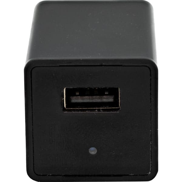 USB Charger Hidden Spy Camera with Built in DVR. In this age of electronics, everyone has a variety of adapters and chargers plugged into nearly every electrical outlet. No one will even pay attention to the USB charger hidden camera. It records in crisp clear 1920x1080p resolution at 30fps on a 32GB micro SD card which will store up to 7 hours of footage. This covert USB adapter is great for office security or a nanny cam at home. It is very easy to use and will do Loop or Motion Activated recordings. Easily connects to your computer to download and view video footage.