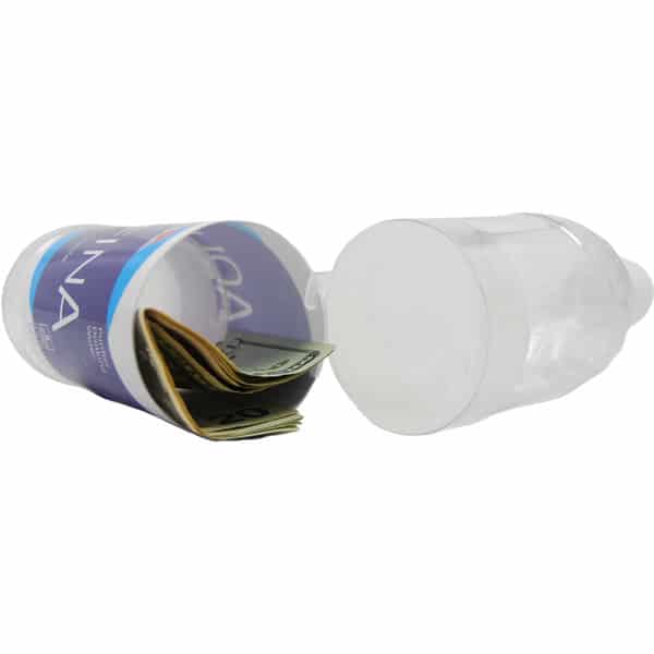 The WATERBTL Diversion Safe is a unique home-security product designed to blend with your existing home items like beverage bottles and food containers while discreetly storing your valuables. It looks exactly like a beverage container or other common household item and is even weighted to feel full when closed. The Water bottle comes empty, allowing you to fill it with whatever you need securely stored. It features a removable top and bottom for easy access to the contents inside and has interior dimensions of 3 ½” x 2 ½” for secure storage of smaller items.